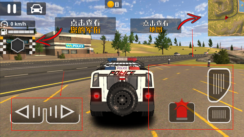 2、左侧屏幕控制角色移动或驾驶车辆,右侧设置射击、检查、抓捕等按钮,滑动屏幕可切换视角观察环境变化。