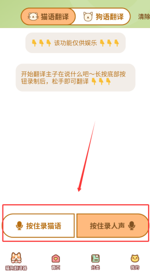 2、双向交流设计,不仅支持将宠物声音转换为文字,同时也可以将人类语言转换为宠物可以理解的叫声。