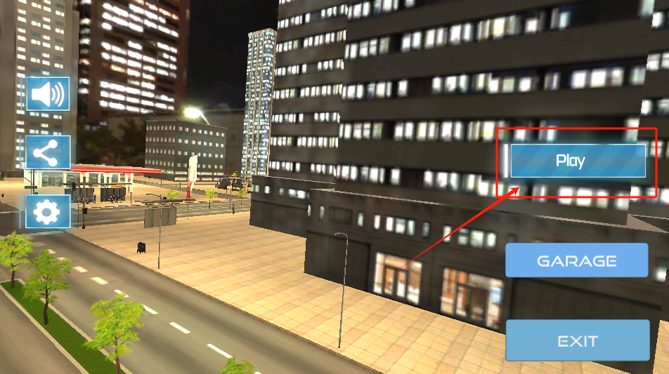 1、点中间的Play按钮开始游戏,其他按钮可以进车库或退出。