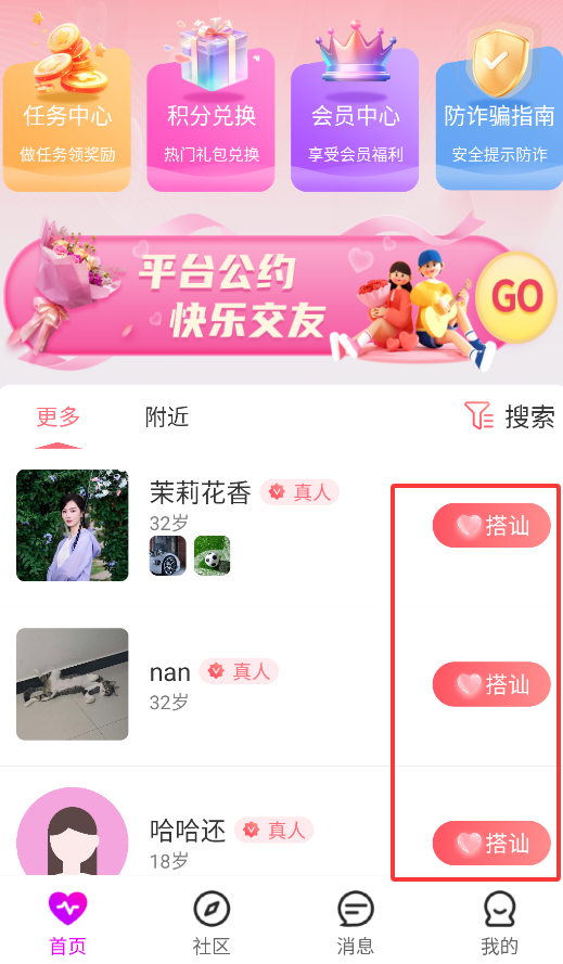 1、新用户注册:完成手机验证和真人认证后,完善个人资料标签,开启社交之旅。