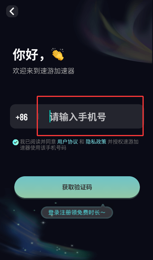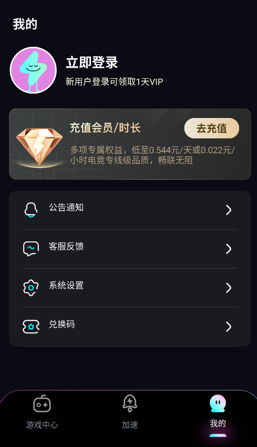 1、下载安装完成注册后:新用户注册账号即可获得专属新人免费加速时长福利。