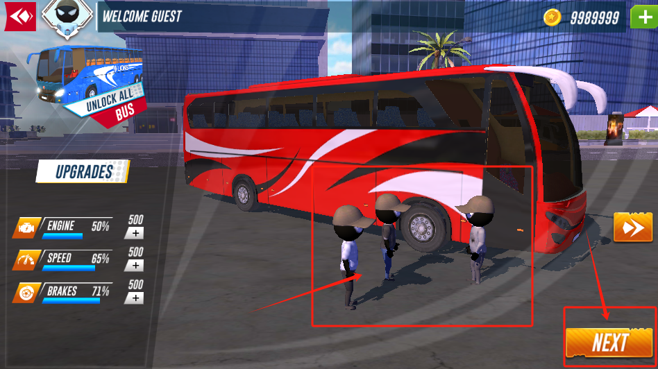 1、完成各类载客任务,安全准时地将乘客送达目的地,赚取金币升级车辆,从城市公交到长途客运逐步提升难度。