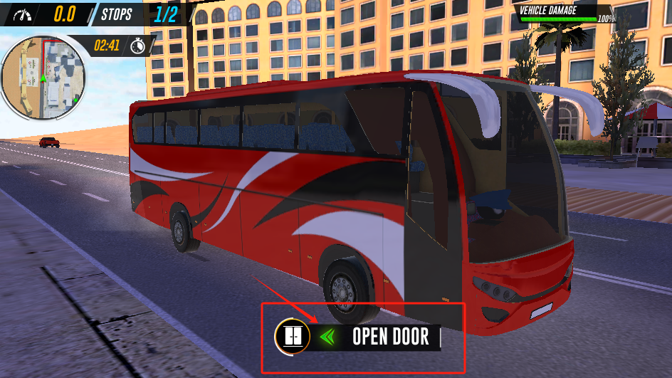 3、大巴到站了,点击右下角OPEN DOOR按钮开门上下客,注意完成站点任务。