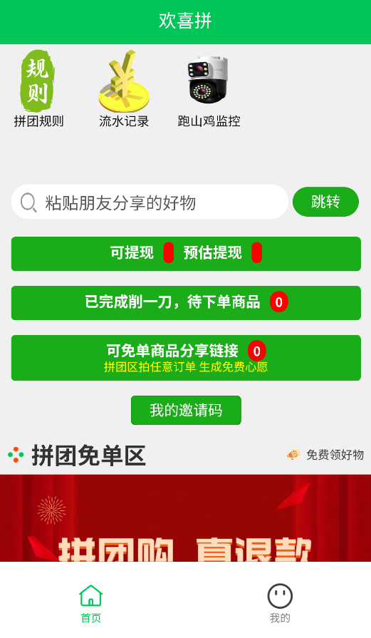 1、启动APP后,点击首页"拼团指南"按钮,详细了解平台的拼团流程和参与规则。