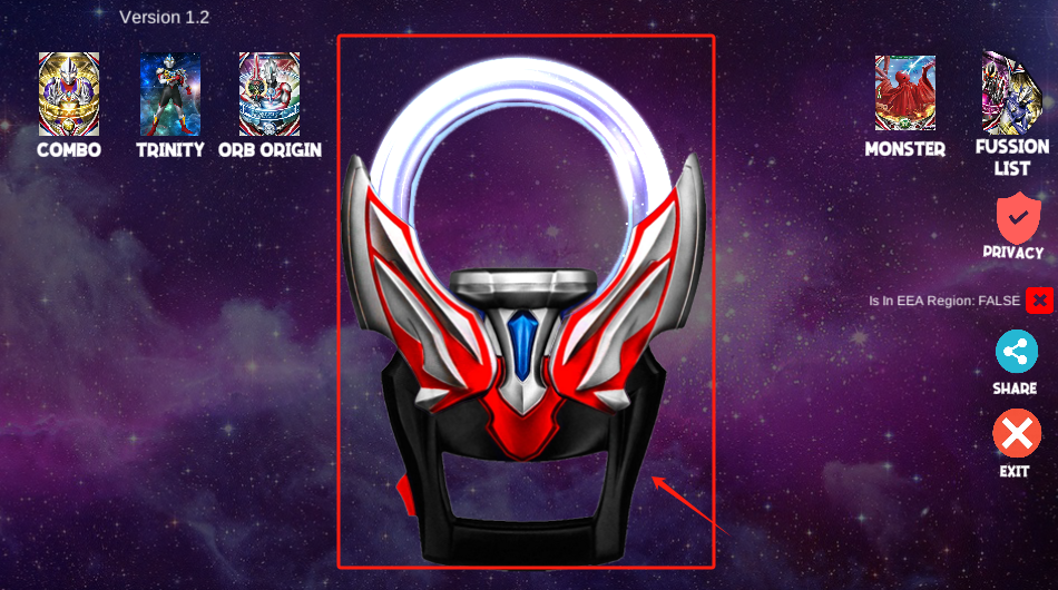 1、点中间红框里的变身器开始游戏,左边选形态右边看怪兽图鉴。