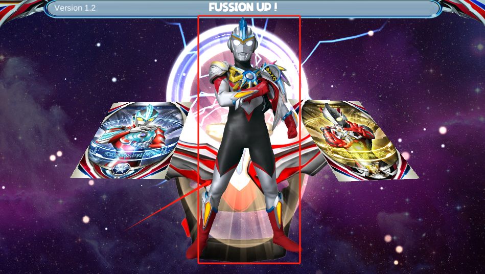 3、看到FUSION UP提示后,点两侧卡片完成奥特曼融合升级。