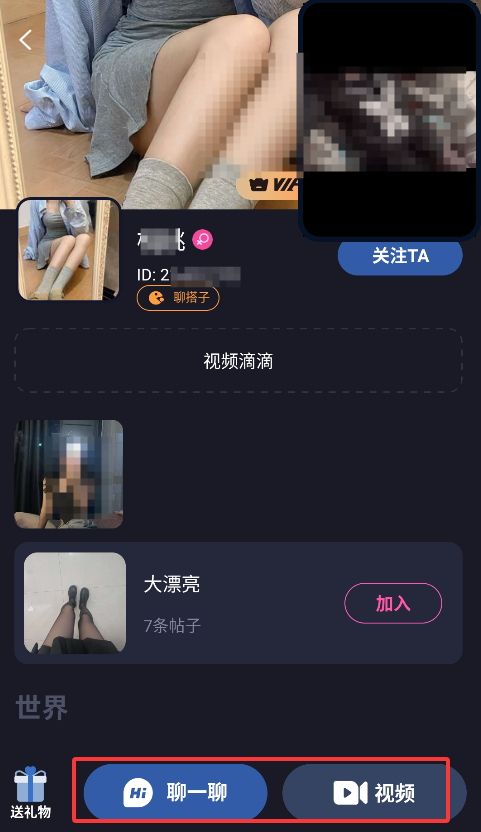 2、遇到感兴趣的用户,点击其资料页的"立即聊天"按钮,即可发起文字、语音或视频对话。