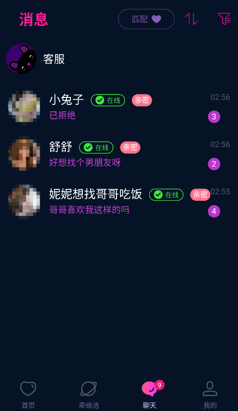 2、智能精准匹配系统:基于多维大数据分析算法模型,精准推荐高匹配度潜在对象,显著提升用户交友成功率体验。