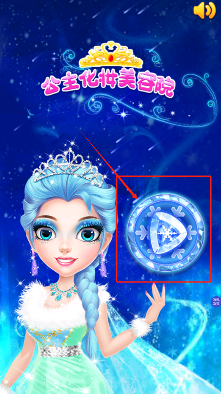 1、点击蓝发公主旁边的雪花图标,进入冰雪主题装扮模式,开始造型设计。