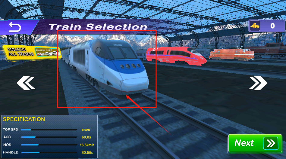 2、选中间红框里的蓝白高铁,看左边参数,点右下角Next确认选择。