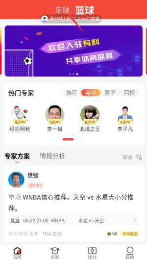 3、独创的"专家直播间"功能,汇集知名解说员和退役运动员。比赛期间可实时互动交流,获取专业视角的赛事解读。