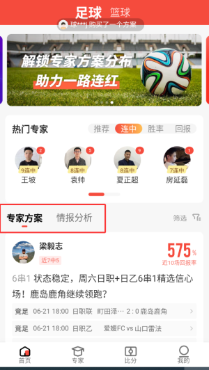 2、浏览专家推荐时,可通过联赛分类或胜率排序筛选,快速找到心仪的比赛分析方案。