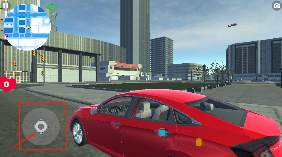 2、控制红车移动,看左上角小地图,红框是目标点,右上角有飞机飞过。