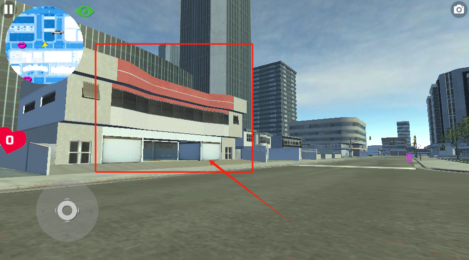 3、跟着红箭头开到红顶房子,左上角心形是生命值,现在是零。