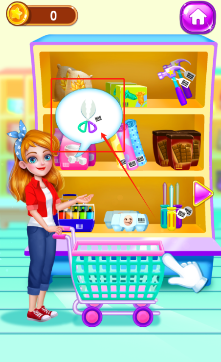 3、点剪刀图标能买工具,彩色购物车可以查看你买的东西。