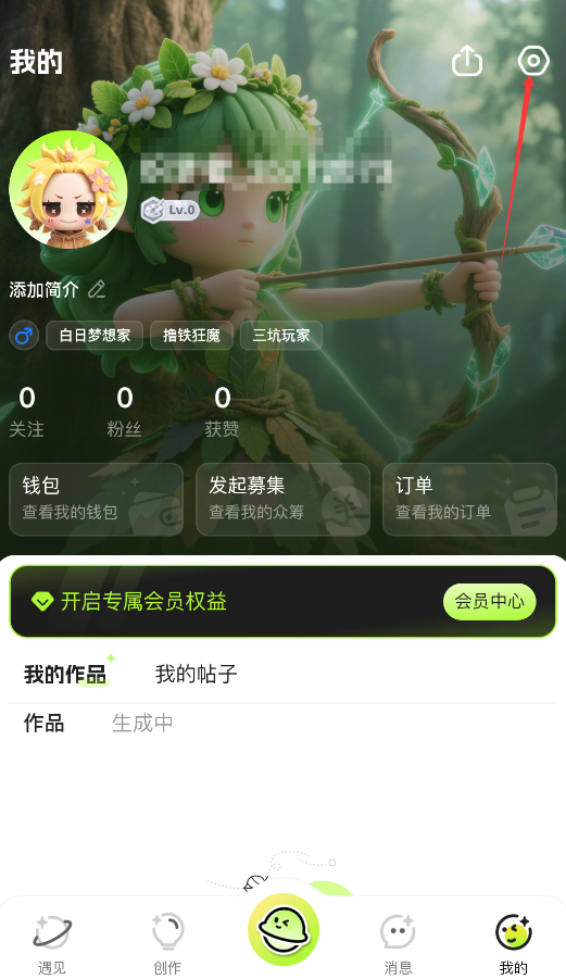 1、进入应用后,点击底部导航栏"我的"页面,在个人中心右上角找到齿轮形状的设置按钮。