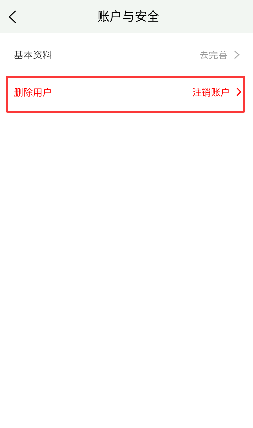 3、页面最底部可见红色字体的"注销账户"按钮,点击后按提示完成验证,即可永久删除账号数据。