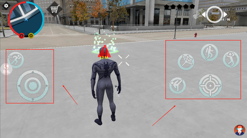 2、左侧是移动控制区域,右侧是瞄准与攻击按钮,界面下方显示当前血量与弹药状态。
