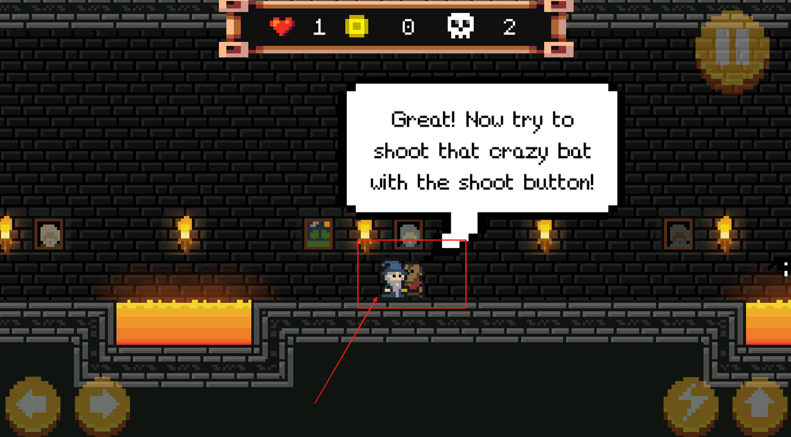 2、控制小人移动,注意左上角生命值100,碰到白发NPC可以对话或交易。