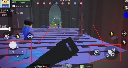 2、屏幕左侧是移动控制按钮,右侧为瞄准与射击键,上方还有道具栏可以快速使用补给或部署防御设施应对危机。