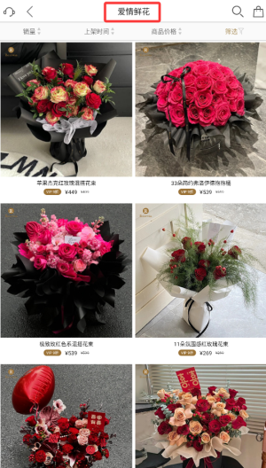 2、根据款式、价格等条件筛选心仪的鲜花,查看详细图片和文字介绍。