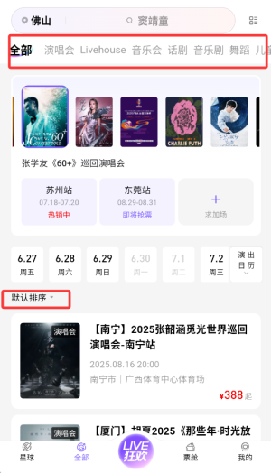 2、通过搜索或推荐找到心仪歌手的演唱会场次,查看具体时间和票价信息。