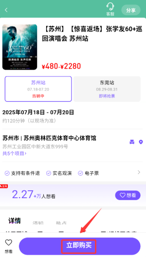 3、选择合适场次后点击"立即购票",完成选座和支付即可获得电子票券。