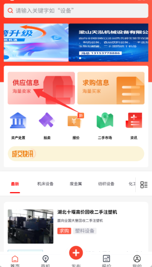 1、启动回收商网APP后,在首页导航栏点击"供求信息"选项,进入信息浏览页面。