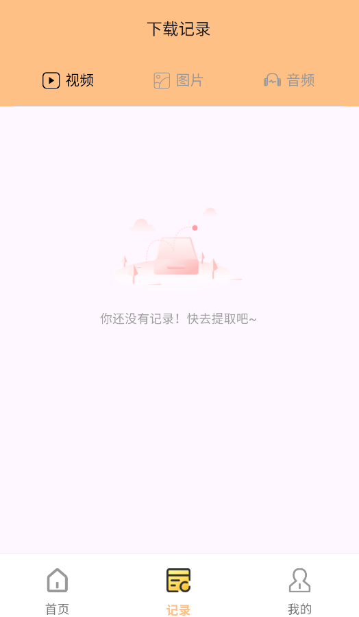 3、"下载历史"按视频、图片、音频分类存储,显示来源平台和保存时间,长按文件可分享或删除。