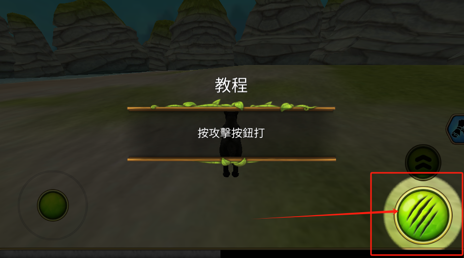 3、按右下角红框里的绿色攻击键,用藤蔓打敌人。