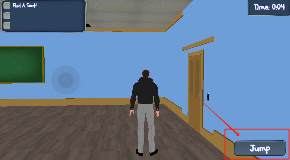 3、按右下角红框里的Jump键,让角色跳起来找座位。