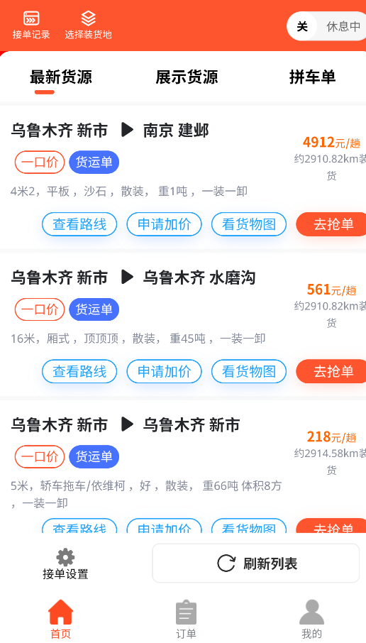 1、打开应用后,在首页点击"接单大厅"可实时查看周边货源信息,包括货物类型、运输距离及运费,支持一键抢单或筛选高价值订单。