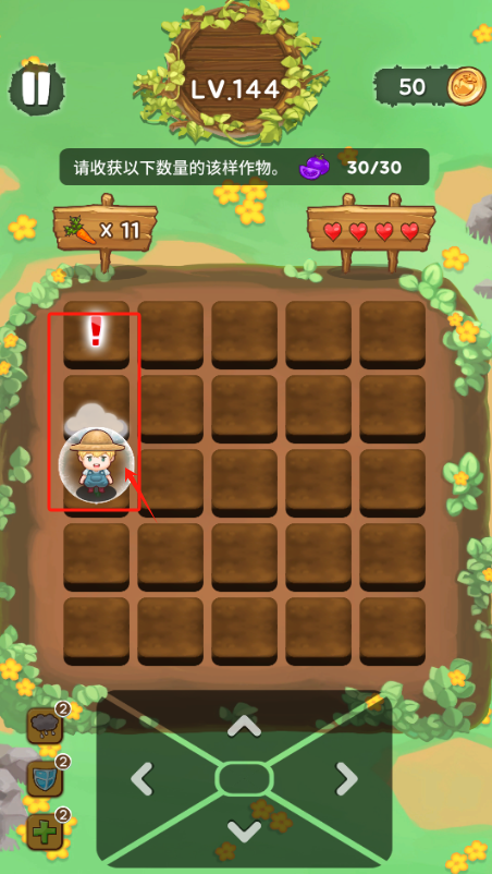 2、要收30个胡萝卜,已收11个,点田里带感叹号的格子操作。