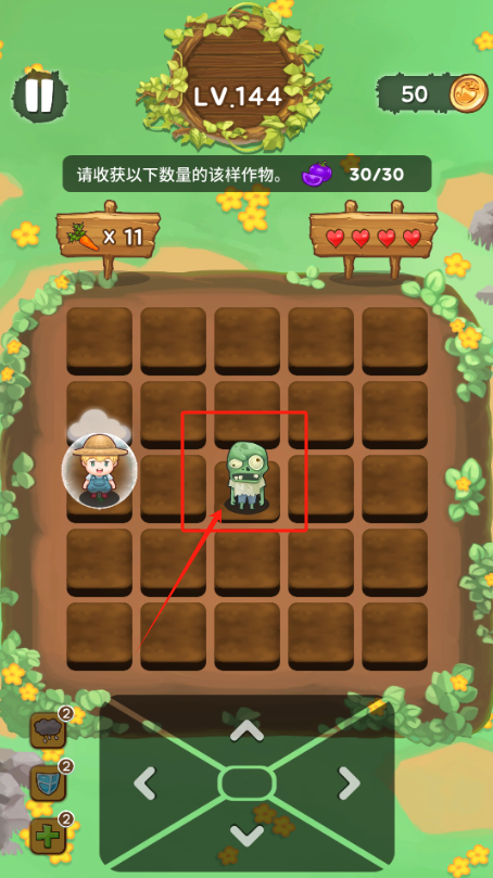 3、小心田里的僵尸,继续收胡萝卜,现在30/30完成了11个。