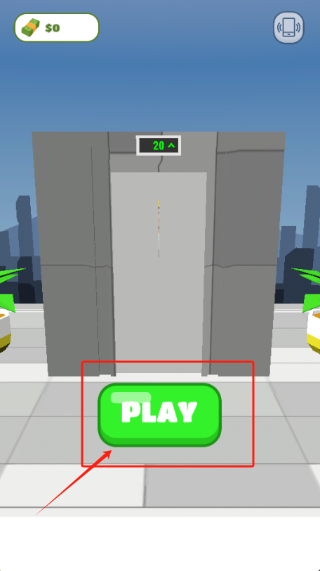 1、点红框里的绿色PLAY按钮开始游戏,左上角显示0块钱。