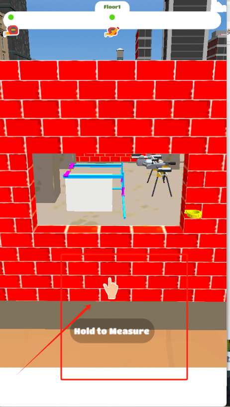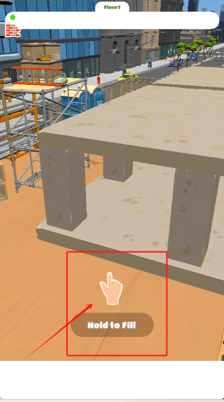 2、第盖一楼要长按红框里的按钮,把水泥灌进柱子。