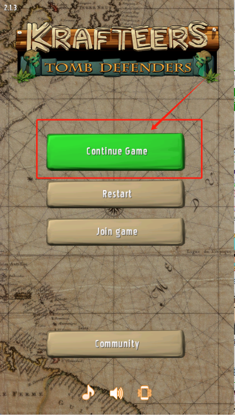 1、点红框里的ContinueGame继续游戏,下面是重开和联机按钮。