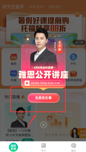 2、平台提供雅思备考专题公开课资源,支持在线预约免费参与名师讲解课程。