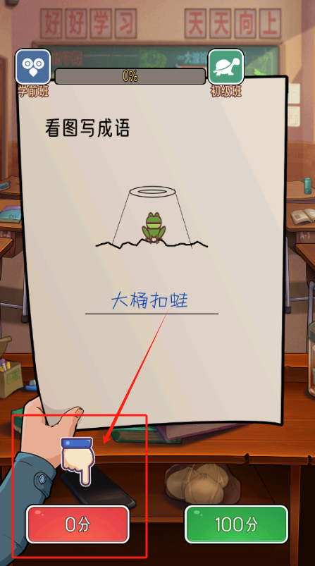 2、看到大桶扣蛙的图片,按红色按钮给0分,这是错误答案。