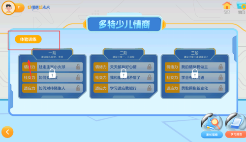 1、阅读并确认使用协议后即可进入儿童情商培养主界面。