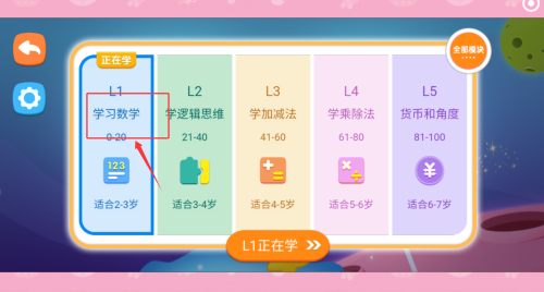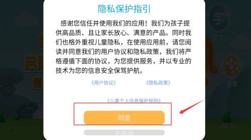 1、阅读并确认使用协议后即可进入儿童学习主界面。