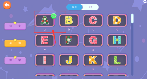 3、字母学习区采用互动动画方式帮助孩子掌握英语字母发音与书写规范。