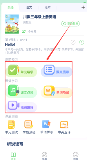 川教英语点读通过多样化的功能和便捷的使用体验,致力于帮助广大学生提升英语能力,满足日常学习需求,让每个用户都能享受轻松愉快的学习过程。