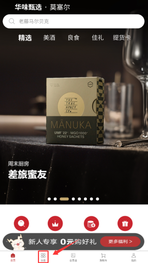 1、进入莫塞尔商城APP后,在首页点击"分类"选项,浏览各类商品品类。