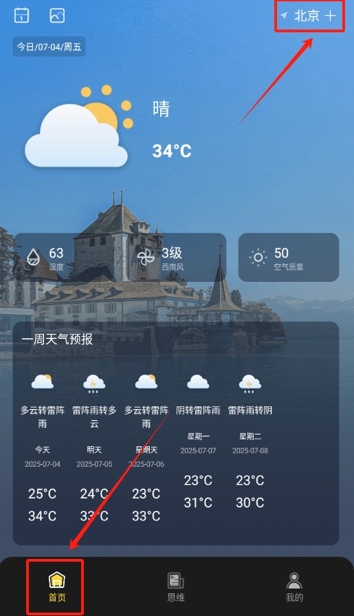 2、首页查看实时天气资讯:打开软件直接查看当日天气,点击进入详情页获取更多维度数据。