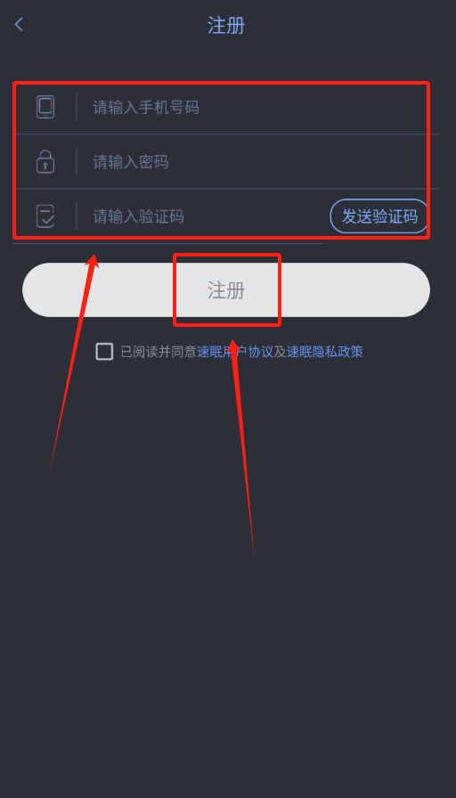 3、新用户注册时输入手机号获取验证码,填写验证码后设置密码即可完成账号注册流程。