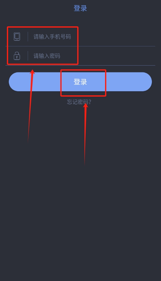 1、打开软件进入登录页面,输入已注册的手机号和密码后点击登录按钮即可进入主界面。