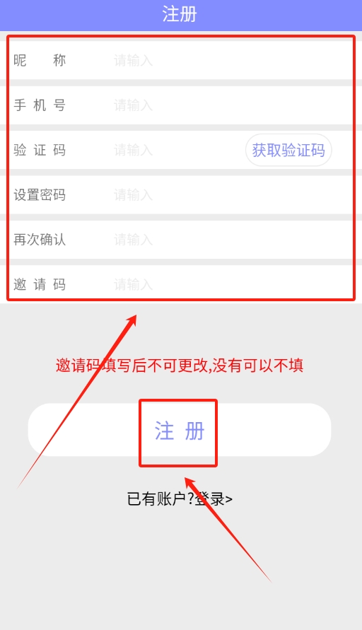 3、新用户注册时输入手机号获取验证码,填写验证码后设置密码即可完成账号注册流程。