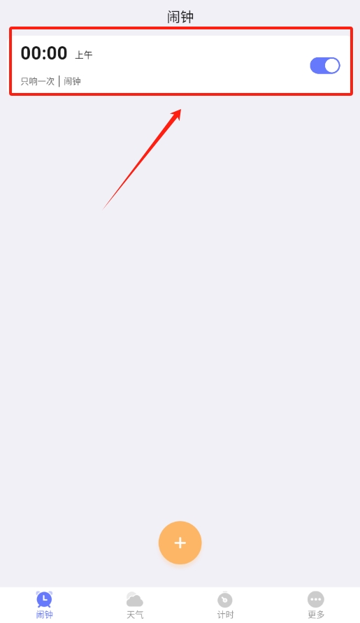 1、打开风信闹钟软件,在首页的闹钟界面,直接点击那个醒目的加号按钮。