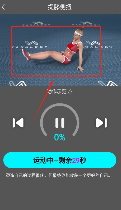 3、这时候屏幕会播放教学视频,跟着视频里教练的示范做动作,就能开始锻炼了。